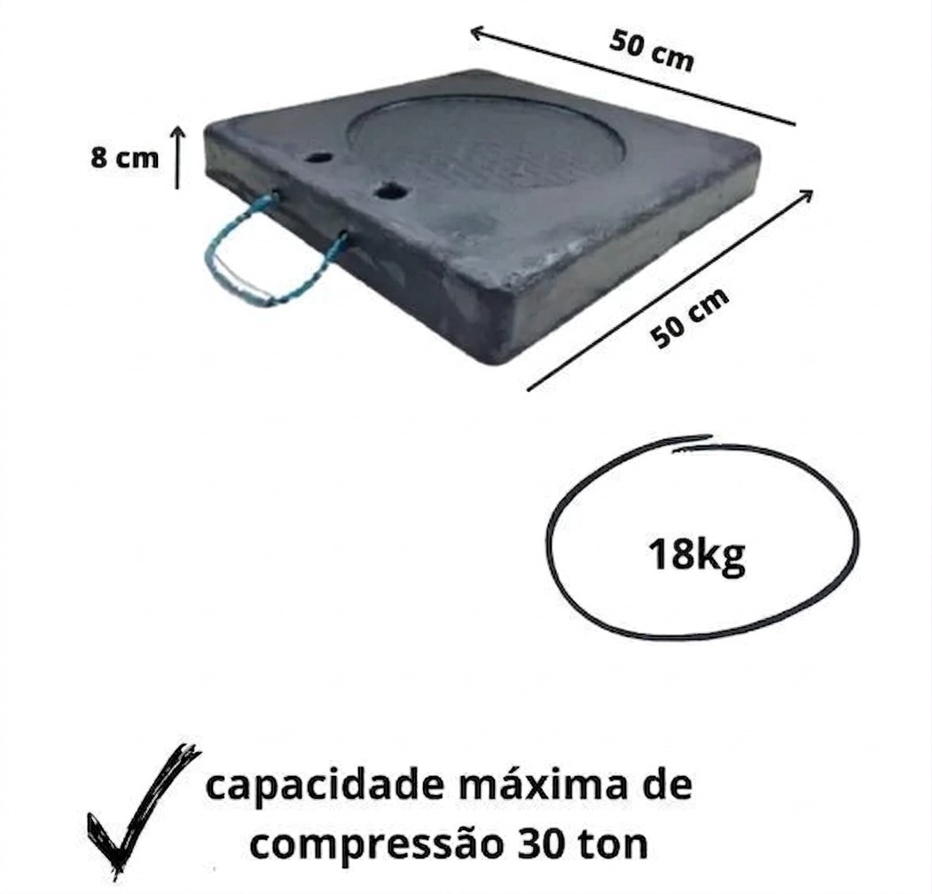 DIMENSÕES: Diâmetro do Círculo 35cm, Altura 50cm, Largura 50cm e Espessura 8cm, ideal para suportar operações pesadas.