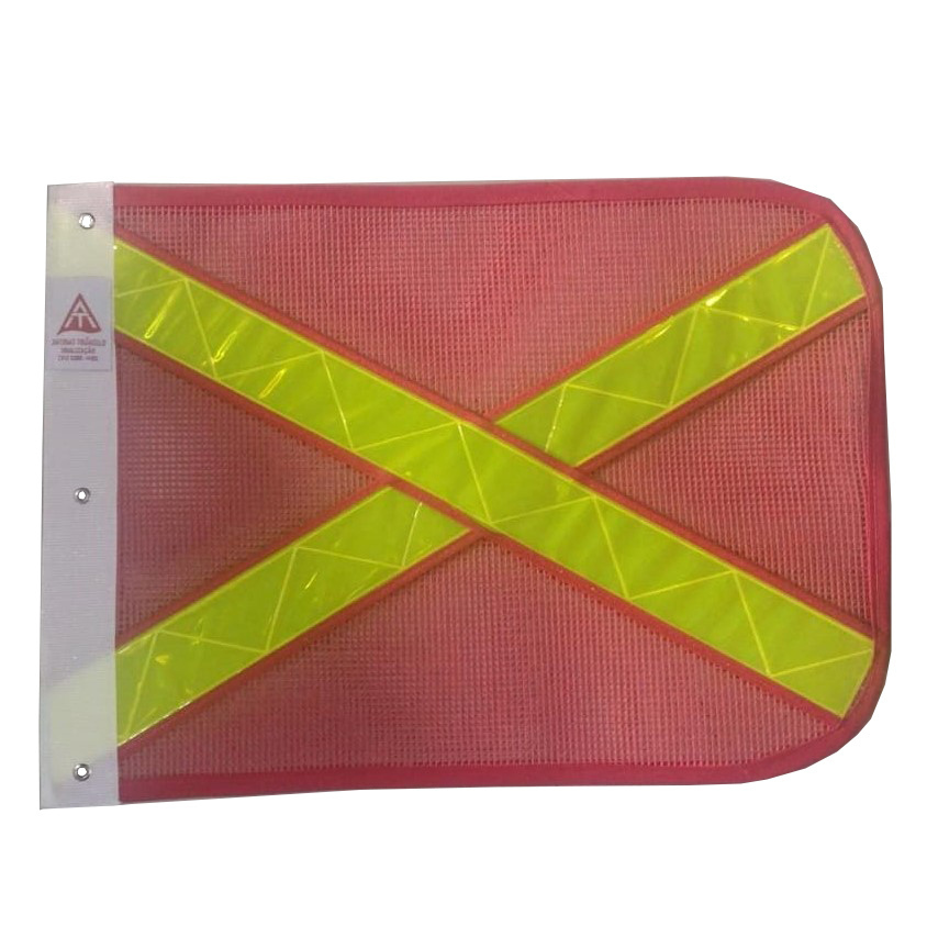 • Bandeirola em tela resinada vermelha com X refletivo amarelo em ambos os lados medindo 40x30cm.