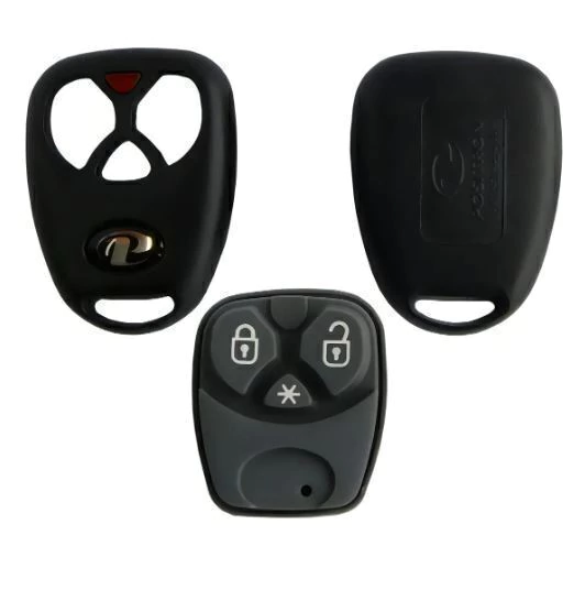 Com 3 botões: trava/destrava (cadeado) + alarme som.