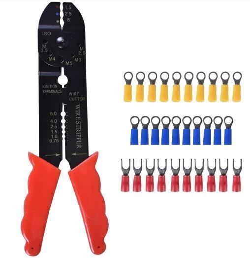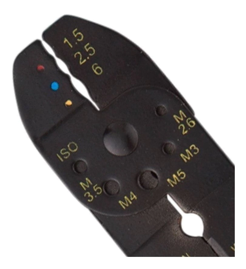 Aplicação: ideal para compressão de terminais olhar e garfo de 0,5 a 6mm². Corta e descasca fios e cabos de 0,25 a 6mm².